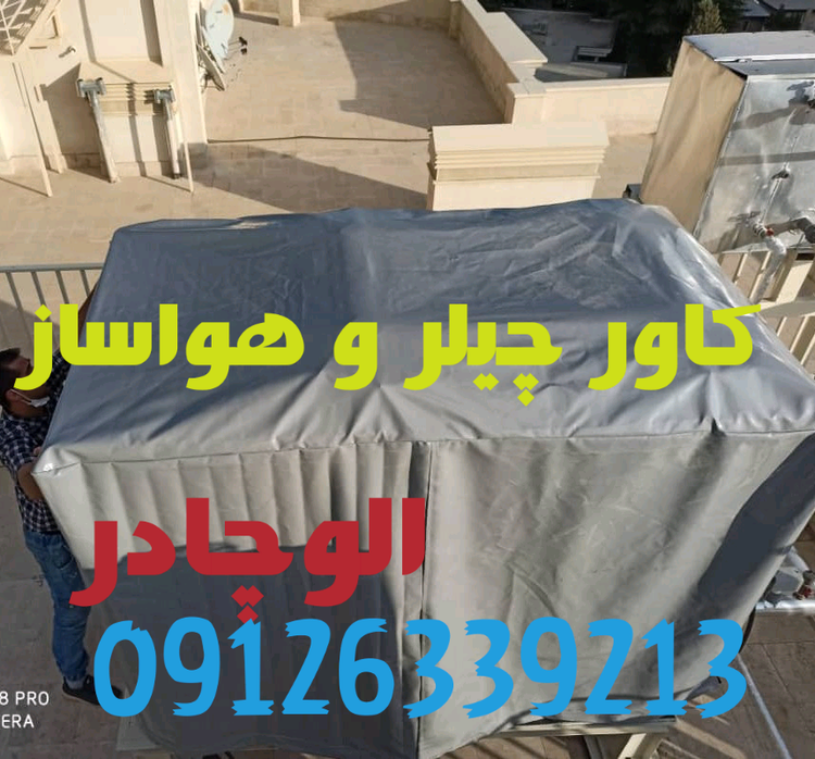 دوخت کاور برای دستگاه چیلر و هواساز با جنس درجه یک ضد آب و ضد آفتاب جهت حفاظت در برابر باران و نور خورشید و افزایش طول عمر دستگاه ..
